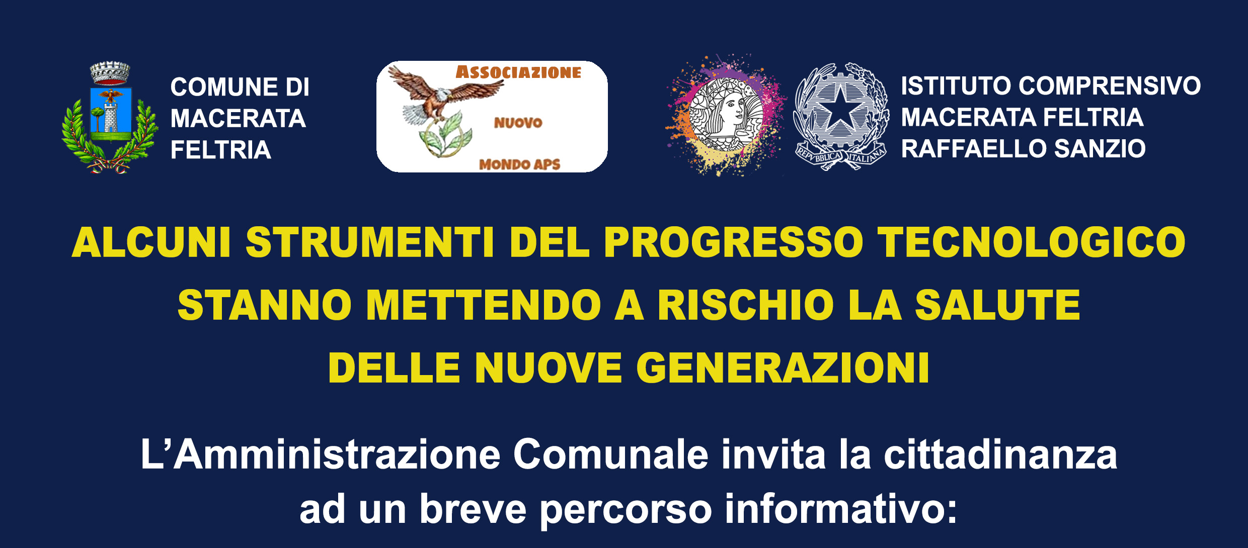 Dedicato in particolare a GENITORI - NONNI - DOCENTI - EDUCATORI del territorio. Saranno trattati alcuni temi sensibili e attuali sulla SALUTE e sull’ EDUCAZIONE dell’infanzia e dell’adolescenza con la Dott.ssa MARINA GIORGETTI e Dott.ssa ELIANA BACHIOCCO.